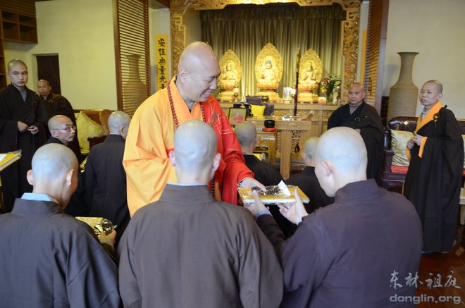 2013年10月23日,即农历九月十九,适值观世音菩萨出家日,诸佛欢喜,龙天吉祥,东林祖庭在方丈室举行了2013年秋季剃度法会。