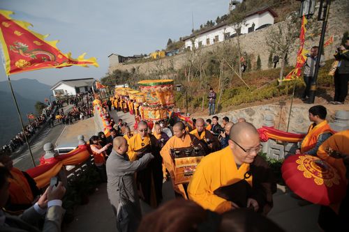 10月27日上午,湖北随州海拔1055米的大洪山宝珠峰顶旌旗猎猎,人声鼎沸。备受海内外关注的湖北随州大慈恩寺全堂佛像开光庆典暨大洪山核心景区建成开放活动在这里隆重举行,这标志着湖北鄂西生态文化旅游圈“两园牵两山”旅游战略又增添一精品景点。