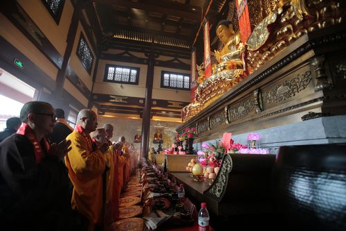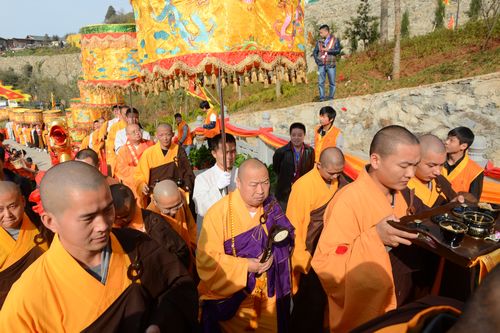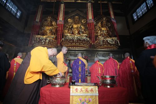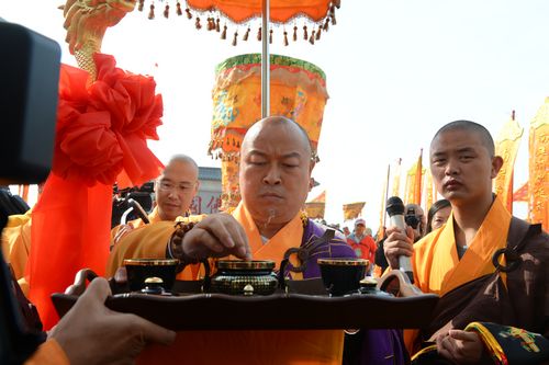 上午10时18分,正慈大和尚、印顺大和尚、狄旺长老、演觉大和尚等数十位高僧大德至大雄宝殿举行全堂佛像开光法会。开光仪式上,主法法师主法洒净,拈香说法。法会现场梵音嘹亮,清净庄严,在一片祥和的气氛中,大慈恩寺全堂佛像开光法会取得了圆满成功。