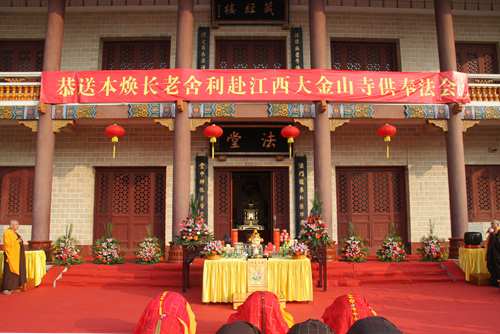 2013年10月30日下午16时,弘法寺隆重举行恭送本焕长老舍利赴江西大金山寺供奉封函仪式的法会。仪式由弘法寺首座一如长老与代表大金山寺住持印空长老尼出席法会的大金山寺监院顿成法师共同主法,与各界信众庄严诵经祈福,护送长老舍利启程,共沾法喜!