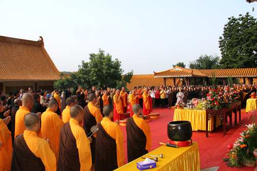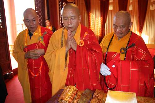 整个法会历时约近一小时诵经声后,四众弟子瞻礼本老舍利并共同祈愿恭送本焕长老舍利赴金山寺活动一帆风顺。