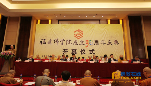 接着,福建佛学院院长学诚法师在开幕式做了题为《总结过去 面对现在 展望未来》重要讲话。总结福建佛学院三十年来的成绩,学诚法师讲到佛学院一直坚持自己的办学特色,在实践中积累经验,在探索中砥砺前进,不断为福建佛教乃至中国佛教的复兴,输送着数量可观的僧才,也为社会发展贡献着积极力量;面对现在,佛学院应该特别注意落实教育方式的合理化,教育内容的纯净化和教育过程的持久化,必须正视问题,勇于担当,以振兴佛教为己任,以学僧能否成才为所施行的教育成功与否的衡量标准,不断完善僧伽教育制度;展望未来,学诚法师指出,随着中国佛教的复兴和发展,佛学院已不再是佛教人才培养的唯一渠道。立足当今时代的传统丛林和新式寺院,对佛教人才培养作出了一些新的探索。可以预见在未来,它们将与佛学院教育一道相互借鉴,相互补充,各自发挥自身的重要特长。同时,他表示,福建佛学院的师生在今后的岁月里,一定会继续把握难得的历史机遇,坚定自己的发心,通过大家的努力,凝聚各方的力量,办成一个立足福建、放眼全国、面向世界的僧伽教育基地,为福建佛教在中国佛教走向新的辉煌中续写新的篇章。