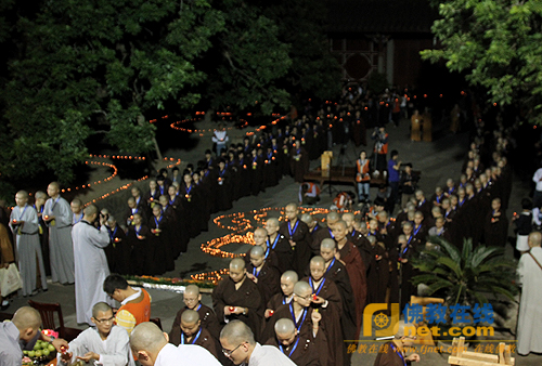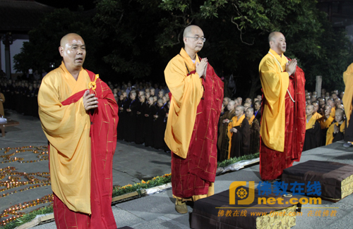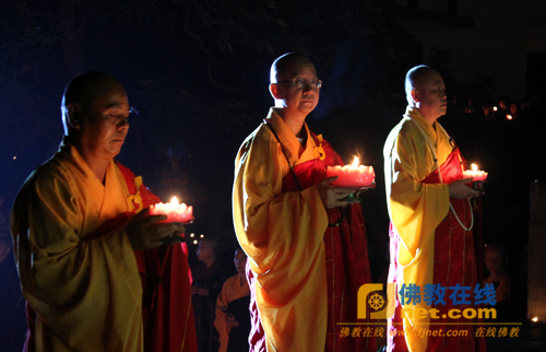 “南山夜话”传灯祈福法会最后在学诚法师带领的回向中圆满结束。