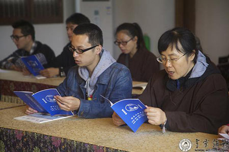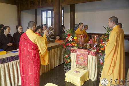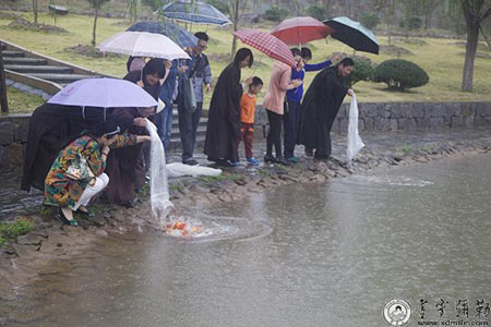 2013年11月2日,即佛历二五五七年九月三十日,是药师佛圣诞日,浙江奉化雪窦山资圣禅寺“慈光人生”居士班举行了药师法门放生共修活动,学员们随喜放生,同诵经典,增寿增慧。虽阴雨绵绵,山雾弥漫,但大家心入禅境,共沾法喜,共沐佛光。