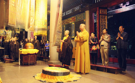 千佛塔寺两序大众依佛门礼仪,钟鼓齐鸣,香花迎请,恭迎印顺法师。印顺法师在梅州市佛教协会会长、千佛塔寺住持明慧法师的陪同下参观千佛塔寺,随后为大众慈悲开示,肯定了明慧法师为佛教界做出的贡献,鼓励大众精进办道,并祝愿大众法喜常在,佛道早成。