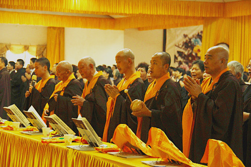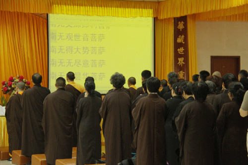 法会从早上8点一直持续到下午4点30分,内容主要是:拜愿,读诵《药师如来本愿功德经》及《药师宝忏》,一心称诵药师琉璃光如来圣号。近千名信众共聚于法堂诵经拜愿,共沾法益。