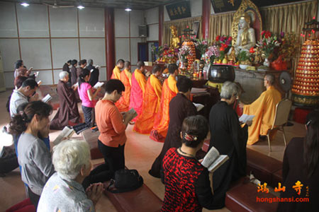2013年11月2日(农历九月三十),恭逢药师佛圣诞。当日上午8时,福建省厦门市鸿山寺监院庚心法师带领大众礼《慈悲药师宝忏》,祝愿国泰民安,世界和平;善信檀越,增福增慧,阖家平安,并为光明灯会员祈福消灾。