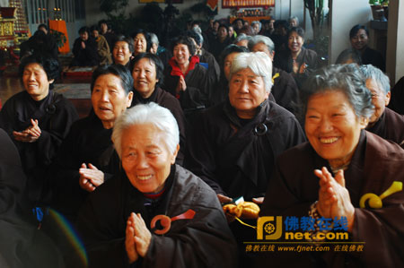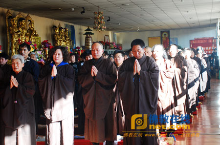 居士、信众恭迎法师讲经