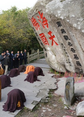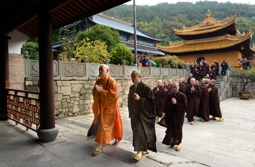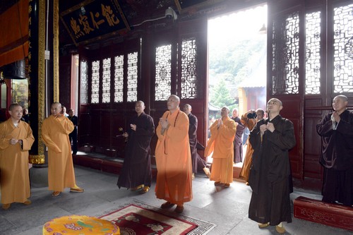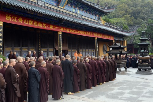 图1:第十一届中国普陀山南海观音文化节“僧尼礼佛顶、万信齐朝拜”法会在法雨禅寺隆重启动