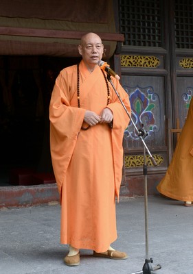 图3:中佛协副会长、普陀山佛协会长道慈大和尚在法会开始前讲话并开示