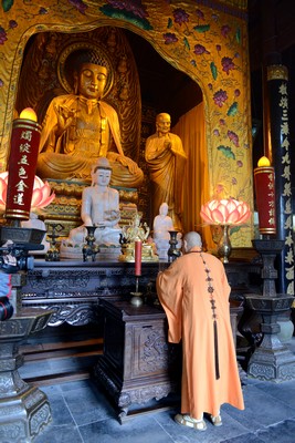 图14:拜至佛顶山慧济禅寺道慈大和尚在大雄宝殿上香礼佛