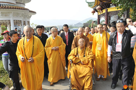 期间,星云大师还在曹溪讲坛为数千名僧侣信众开讲《六祖惠能大师与人间佛教》,并现场回答僧侣信众提问。