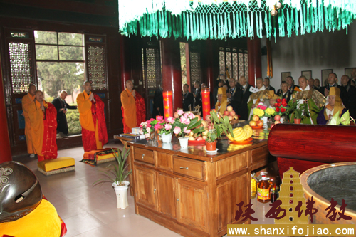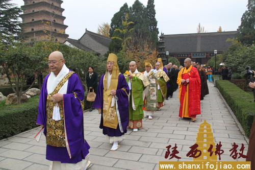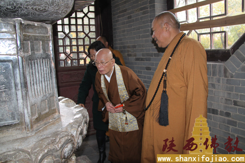 2013年11月12日上午,日本净土宗第200次访华团一行31人参拜了净土宗祖庭香积寺。陕西省佛教协会会长增勤法师、省佛教协会常务副会长宽旭法师、香积寺方丈本昌法师亲切会见了日本净土宗门主伊藤唯真长老一行。