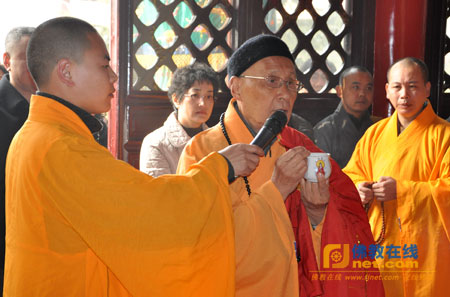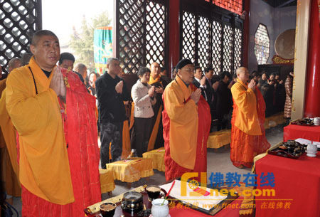 无锡市佛教协会副会长、锡山区佛教协会会长、斗山寺住持法海法师率仪仗队迎请:中国佛教协会咨议委员会副主席、江苏省暨无锡市佛教协会名誉会长、无锡祥符寺方丈无相长老,江苏省佛教协会副会长、无锡市佛教协会会长、无锡南禅寺方丈能开法师,无锡市佛教协会副会长、无锡市滨湖区佛教协会会长、惠山寺方丈玉平法师至大雄宝殿主法开光法会。