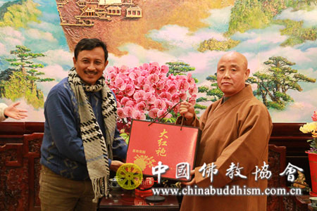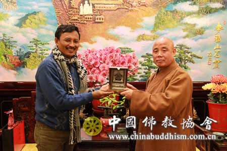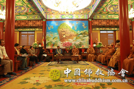2013年12月6日下午,由印度尼西亚巴厘省印度教寺庙管委会负责人组成的印尼地方政府代表团一行到北京广济寺,拜访中国佛教协会,受到中国佛教协会副秘书长、北京广济寺方丈演觉法师的热情欢迎。双方就寺庙修缮管理工作方面的经验进行了座谈交流。