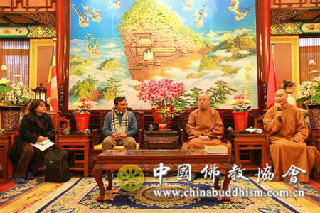 中国佛教协会国际部普正主任、王立副主任等陪同会见。