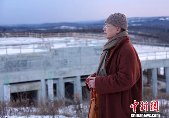 达义法师远眺正在修建的五台山