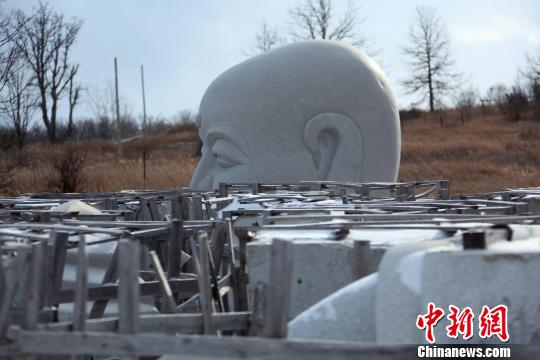 来自中国并等待组装施工的石造像
