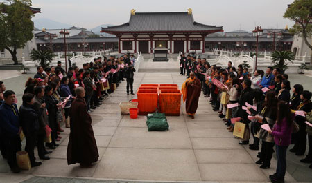 2013年12月12日至13日,中国佛学院普陀山学院成功举办了为期两天的普门精英禅修(二日禅)班。本次精英禅修班共有一百五十位社会各界精英参加,经过两天佛学院的生活感悟和学修体验,令禅修班学员减轻了压力,放松了身心,并近距离感受了通过佛教禅修所带来的愉悦、宁静和祥和。