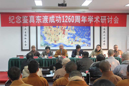 2013年12月13日,江苏扬州鉴真佛教学院在学院多媒体室举办了纪念鉴真东渡成功1260周年研讨会,扬州知名学者和学院全体老师、学僧120多人参加了研讨会。研讨会由蒋寿建副院长主持。