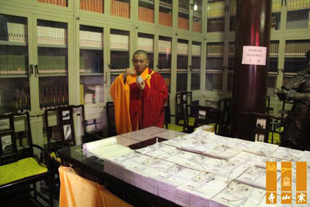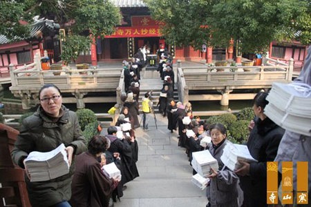 2013年12月25日上午,“第二届万人抄经功德回向法会”在江苏省苏州寒山寺法堂举行,法会由寒山寺演航法师主法。