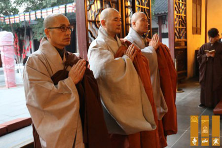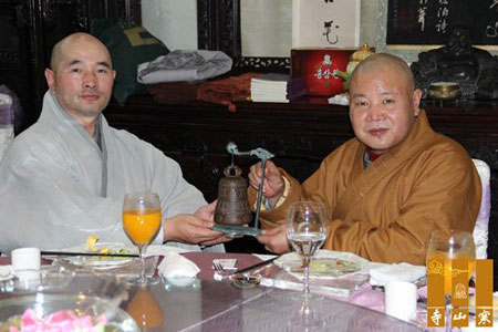 2013年12月29日,韩国龙门寺虎山法师一行,在寒山书院正信法师陪同下,到江苏省苏州寒山寺参访,并拜访寒山寺方丈秋爽法师。