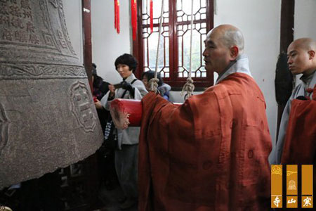 韩国龙门寺虎山法师在寒山寺撞响祈福钟声