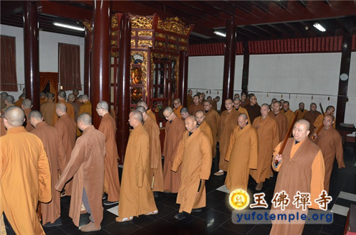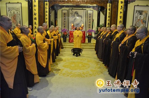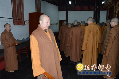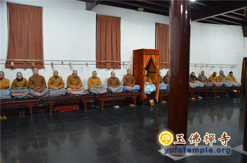 即日下午晚课结束后,所有法师云集般若丈室,向方丈觉醒大和尚告生死假。开始玉佛禅寺一年一度的禅七。