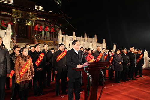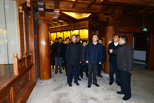 市委书记阎立、代市长费高云等领导在市民宗局局长赵世平的陪同下视察宝塔《艺术宝库》殿