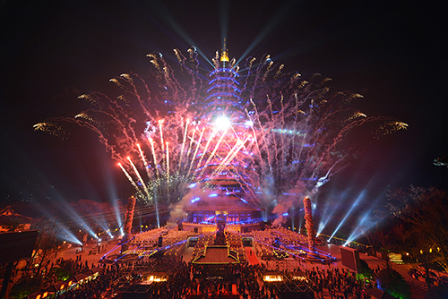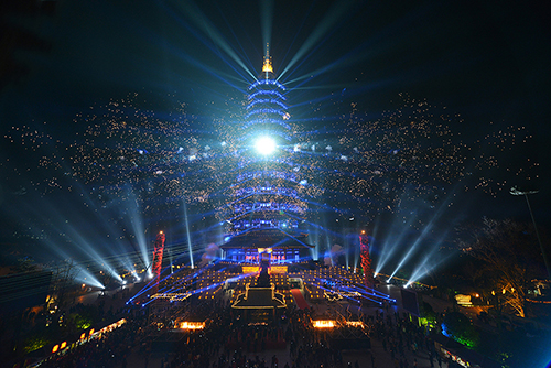 本次“听钟声迎新年”祈福盛典以“光”为主题,分为“喜庆之光”民俗表演、“幸福之光”公益慈善和“智慧之光”祈福迎新三个部分。