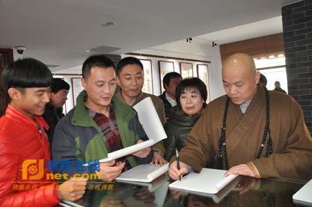 佛教在线山东讯 2014年1月3日上午10时,由青州福泽轩、徐州莫高文化传播有限公司、泰山卷云轩文化艺术交流中心、释心博雅艺术机构、青州万荷艺术馆等单位共同承办的 “墨印禅心——果光法师书画展”在山东省青州市万荷艺术馆隆重拉开帷幕。此次书画展展期为五天,旨在让观众通过欣赏书画作品艺术的同时,熏染佛教文化,了解佛教博大精深的般若智慧和慈悲情怀。