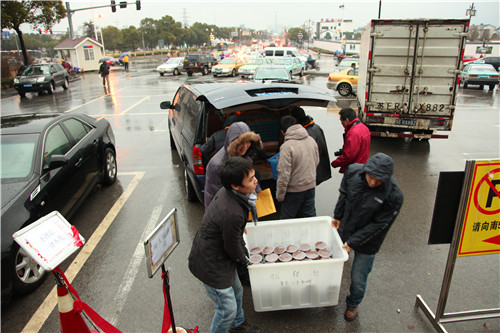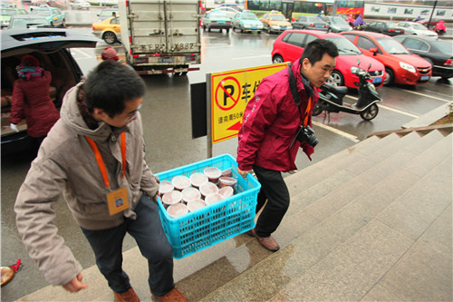 2014年1月8日(腊月初八),苏州弘化社慈善基金会“传递感恩祝福,倡导健康生活”——施粥暖冬活动于灵岩山景区正式开始。早上六点三十分,弘化社慈善基金会的工作人员及十多名义工就已早早赶到了灵岩山景区门口,做好了施粥活动的准备工作。虽然天还下着小雨,但大家都不顾寒冷,干得热火朝天。