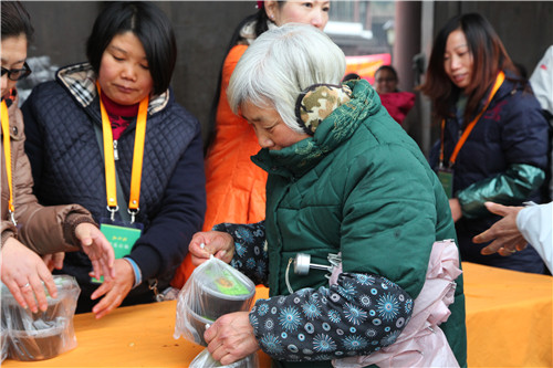 本次灵岩山景区的施粥活动,得到了灵岩山寺下院和苏州本草人生素食馆的大力协助。