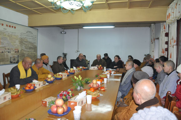 会议中,来自市区及各县区的佛教寺院住持或代表汇报了2013年在弘扬佛法、扶贫济困、道风建设等方面的情况和所取得的成绩。各位与会人员并就这些方面展开了积极的交流和探讨,特别在爱国爱教、贯彻党的十八大精神、吸取省宗教局和市民宗局在“宗教慈善周”等活动中的成功经验,以及创建特色寺院等重点话题上进行了总结和交流。