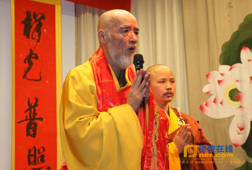 接着,觉圣法师带领信众共同演唱梵呗《赞佛偈》供养寿星本渡长老。一首《赞佛偈》中感受浓浓的法雨恩赐,体会佛法的大慈大悲,感悟诸佛菩萨的无疆大爱。多年来,本渡长老以弘法利生为己任,度人不倦,修复禅院,开创道场。他的弘法足迹遍布了大江南北,虽经千辛万苦,但为如来家业而无怨无悔。
