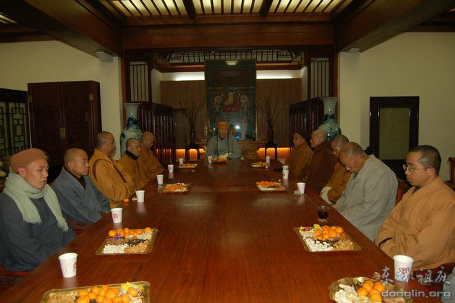 2014年1月28日,临近新春佳节之际,东林寺以及净土苑全体班首执事共约40位比丘师父在东林寺方丈室二楼会议室举行了新春茶话会。会议由东林寺首座本通法师主持。东林寺方丈大安法师出席了此次茶话会。