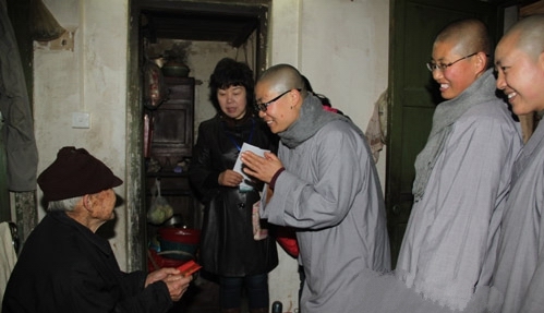 2014年1月26日,新春佳节临近,关爱弱势群体,佛子奉献爱心。上午8时30分,受厦门佛教协会副会长、万石莲寺住持法源法师委托,万石莲寺书记显明法师、僧值禧莲法师、典座妙和法师以及护法居士,在虎园社区居委会陈主任等人的陪同下,看望慰问社区15户孤寡老人、残疾人和贫困家庭,为他们送去了共计上万元的米、油和慰问金,使他们感受到社会大家庭的温暖,祝愿他们幸福平安,快快乐乐过新年。