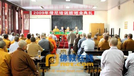 2009年10月16日下午16时,四川省绵阳佛协2009僧尼师资培训班圆满结束,并举行学员结业典礼。四川省民宗局杨伯明副局长,绵阳市民宗局蔡荣副局长,绵阳市佛教协会会长常明法师、副会长正祥法师,佛学研习中心主任刘宁博士等有关领导参加学员结业典礼,并向学员颁发结业证书,表彰优秀学员。