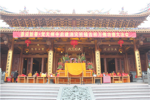 2014年2月18日(农历正月十九日),厦门梵天禅寺为期十天的消灾祈福万佛洪名功德大法会,于上午7时30分在大雄宝殿前举行祈福斋天、放生仪式。斋天祈福是佛教的一种法会仪式,据《金光明经》记载,诸天在金光明会上,于佛前发愿,永护佛教,奉行正法,勤修诸善,远离恶行,同时也遵照佛陀嘱咐,巡行人间,奖善罚恶,广化众生,成就有德之人。故感念诸天护法之功,世人营建供佛斋天法会,诵经礼忏,施设净食,以供养十方三宝、护世诸天及其随从。
