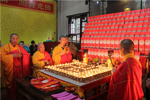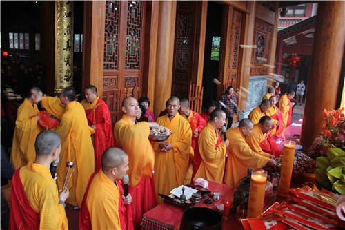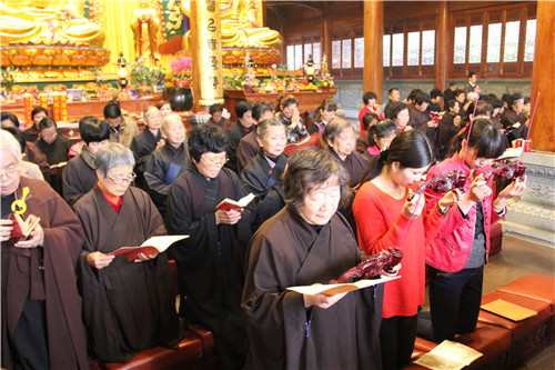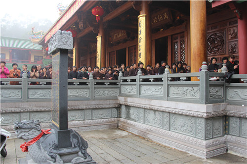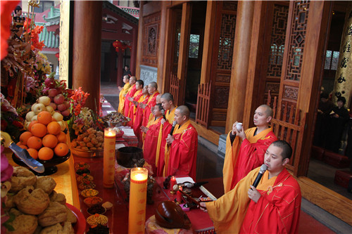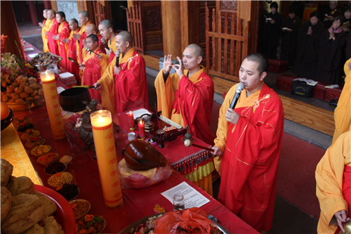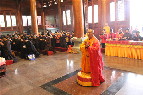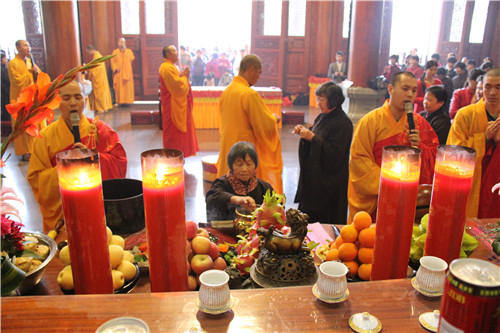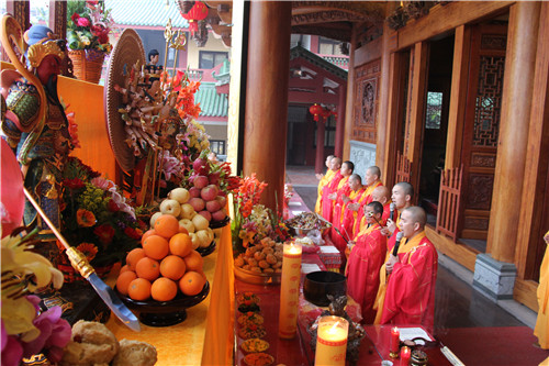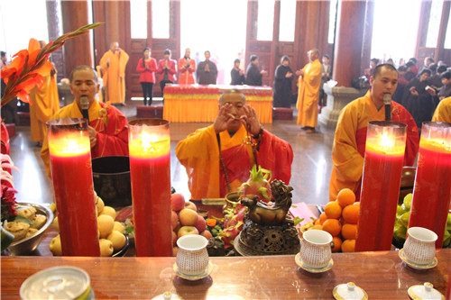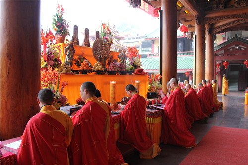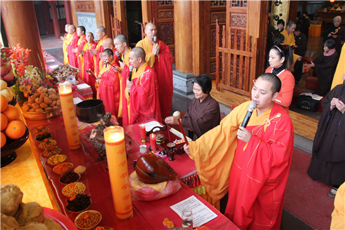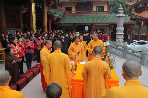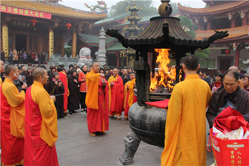随后于大雄宝殿举行法会圆满上供,礼请市佛协副秘书长、同安佛协常务副会长、梵天禅寺住持仁慈法师主法,上供开始,维那师鸣罄举“戒定真香赞”,众法师鸣鱼鼓钟磬铛铰一起合赞,梵音缭绕。仁慈法师率领众善信到三宝台前拈香,虔诚作礼,并以香花果品供养十方诸佛菩萨。法会功德圆满,并将此诸功德,悉皆回向法界一切有情,共同祈愿世界和平、国泰民安、风调雨顺;人民六时吉祥,护法信众等消灾祈福、福慧双增、心想事成、幸福安康、吉祥如意。