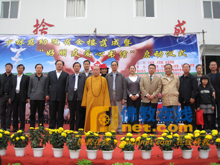 2009年10月18日上午8:00至12:00,少林慈幼院宿舍楼落成暨“好朋友”爱心书信启动仪式在河南登封举行。河南省慈善总会副会长鲁献启,登封市副市长黄卫东,登封市民政局局长范新杰,少林寺方丈永信法师,大河报副总监杨青等参加活动。