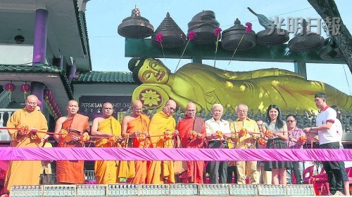 千百家佛教居士林23日在居士林入口处外,为卧佛圣像主持安座大典,当天邀请了约42名泰国清迈僧团参与其盛,另外也有民主行动党百乐镇区州议员杨美盈及该党雪州宣传秘书刘天球一同见证这个历史性的一刻,僧团名士与约百名善男信女齐集一堂,使卧佛安座大典更显庄严殊胜。
