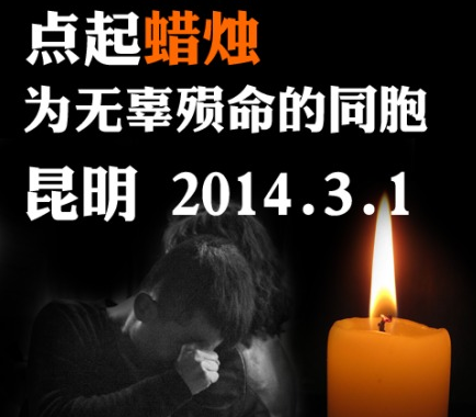 @摩攴直指轩:【今夜,为#昆明火车站血案#逝者点燃蜡烛!】3月1日晚,昆明火车站发生了暴徒持刀随意砍伤无辜群众的人间惨剧。凶徒手段残忍毫无人性可言。法网恢恢,疏而不漏,歹徒终将难逃法律追究。谴责暴力!愿生者平安,逝者安息