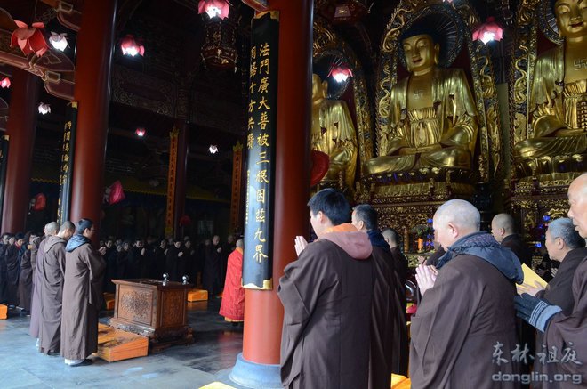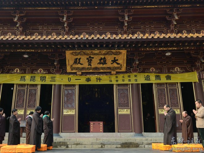 2013年3月4日下午,东林祖庭在大雄宝殿举行“昆明三•一事件追荐法会”。近二百位四众弟子一同为昆明火车站伤亡者诵经念佛,祈愿亡者生极乐、伤者早康复,愿世间灾厄消除,国家祥和安乐。