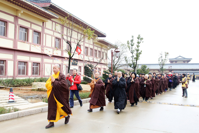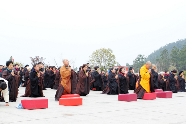 2014年3月8日,来自珠三角的百余位居士,在广东台山白象古寺住持永智法师带领下,前来净土苑朝礼东林大佛。