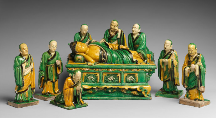 明代弘治素三彩:佛陀涅槃及弟子群雕像赏析