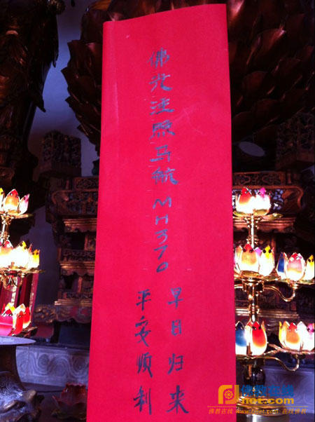 2014年3月11日,江苏无锡开原寺为马来西亚失联马航MH370隆重举行吉祥普佛法会。能超法师携全体僧众祈愿马航MH370平安顺利,早日归来。