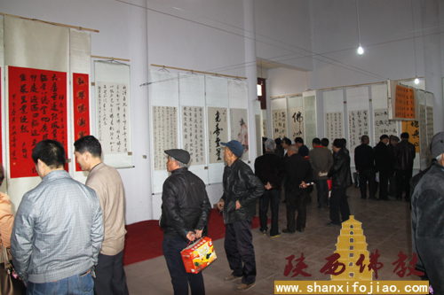 禅龙寺天王殿内的书法收藏展上展览了省内多位书画名家及多所寺院法师的八十余幅书画精品,一幅幅墨宝、绘画处处体现着佛教和谐、圆融的精神思想和文化内涵。展区内精彩纷呈,人们争相鉴赏,互相赞叹!