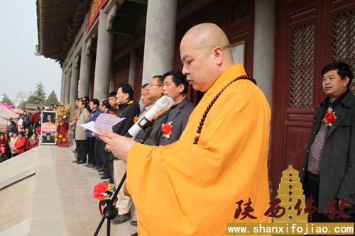 省佛教协会常务副会长、西安大兴善寺方丈、陈仓区禅龙寺住持宽旭法师致答谢辞