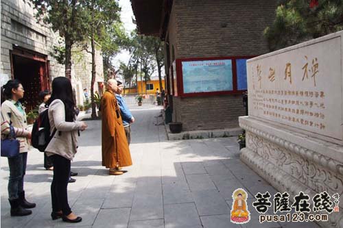 沈祖荣会长与董群教授主要对徐州佛教源远流长的历史进行了实地考察。在参观兴化禅寺的过程中,沈会长与董教授一行就徐州佛教研究的历史与现状以及徐州佛教的历史沿革、云龙山摩崖石刻造像的艺术价值等问题同果光大和尚进行了深入的交流和探讨。沈会长、董教授一行还参观了由季羡林先生亲笔为果光大和尚题写的“禅月无声”碑刻,以及唐宋摩崖石刻造像和北魏大石佛等寺内景点。在明代建筑的钟楼里,董教授饶有兴致地撞了四下钟,他说这是要表达“佛教四谛”(苦谛、集谛、灭谛、道谛)之意。